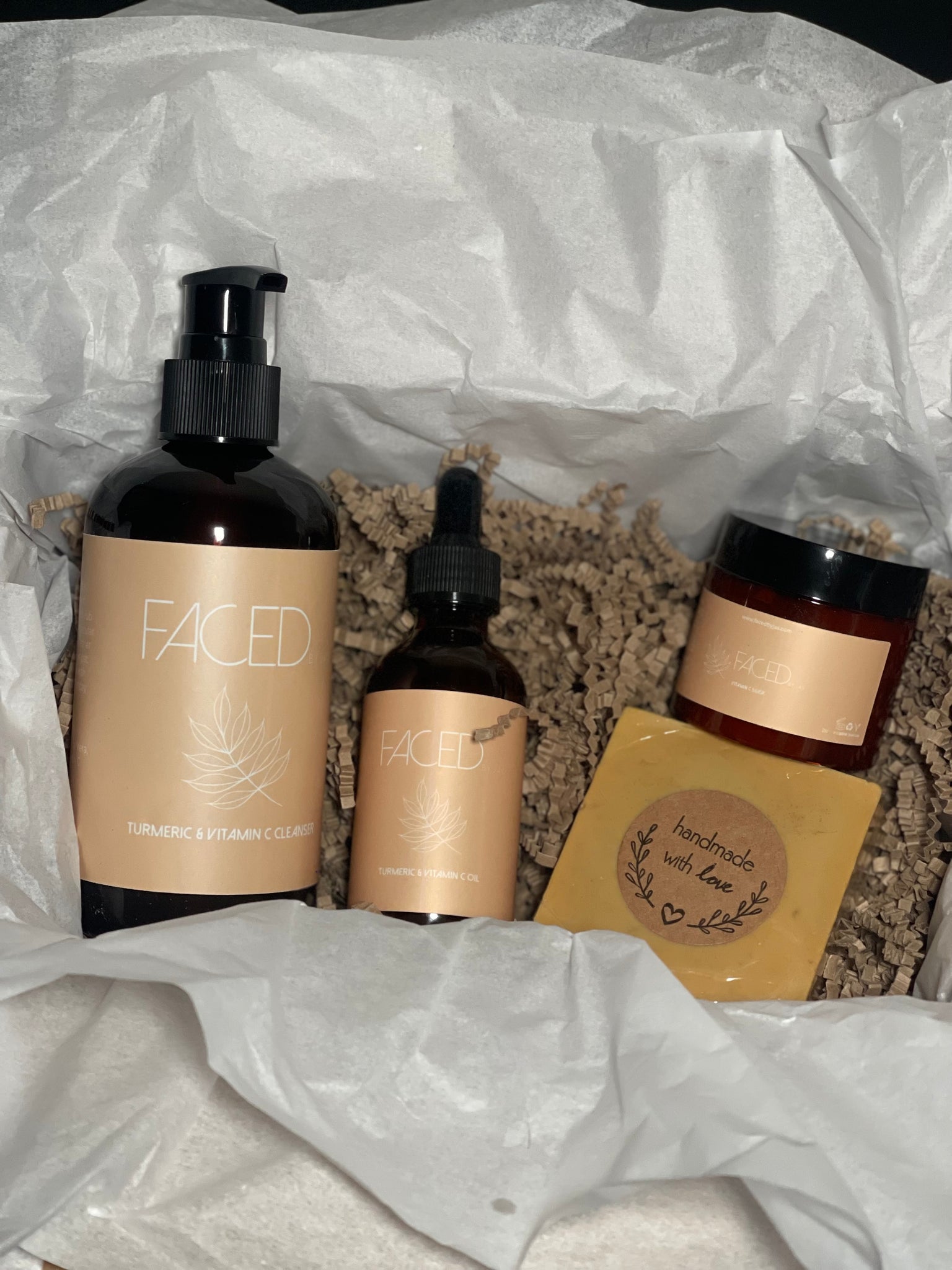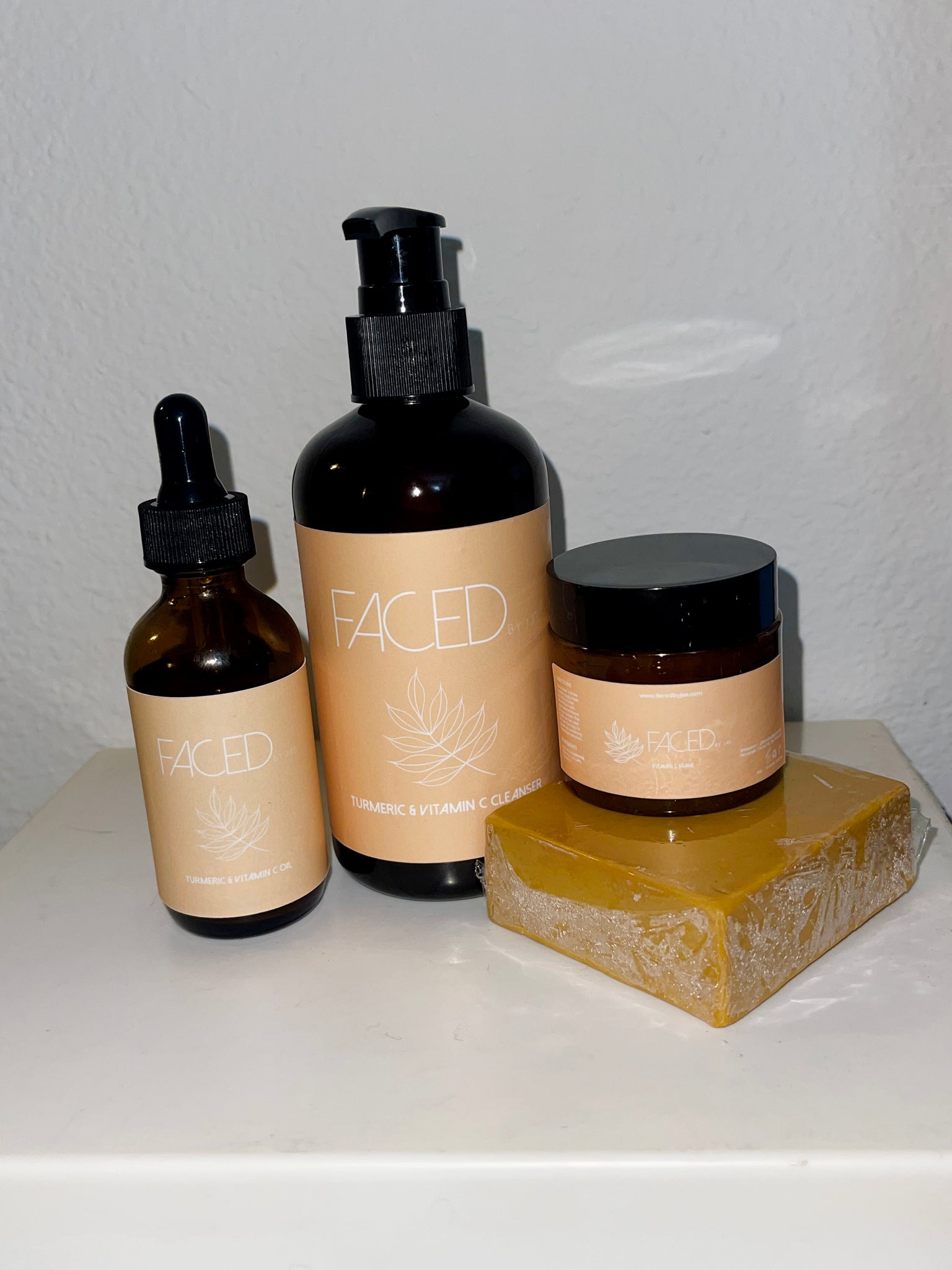 Bundle Includes: Turmeric & Vitamin C Cleanser, Turmeric & Vitamin C Mask, Turmeric & Vitamin C Oil, Vitamin C Bar