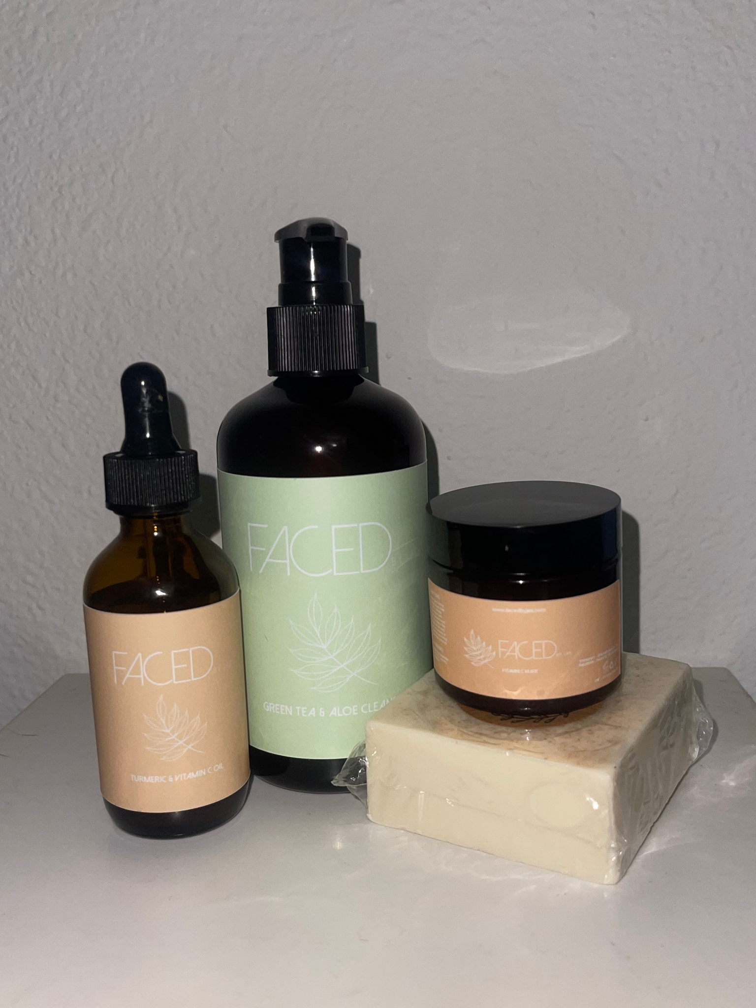 Bundle Includes: Green Tea & Aloe Cleanser, Turmeric & Vitamin C Mask, Turmeric & Vitamin C Oil,This bundle includes all the top products to hydrate the skin.